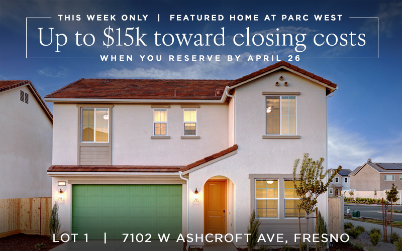 - An ADDITIONAL $15,000 toward closing costs when you reserve by Sunday, April 19.
