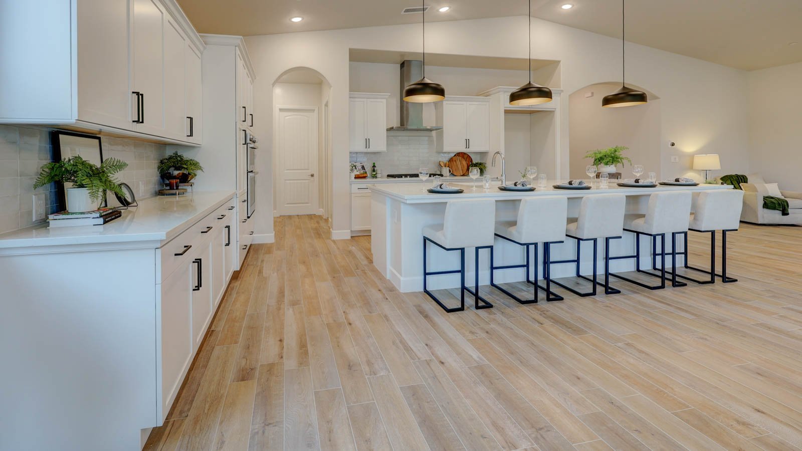 The Benton offers expansive luxury with a grand hallway leading from the entry of the home to the massive great room. With up to 5 bedrooms and 4 bedrooms available in this floor plan, the Benton checks all the boxes for a growing family or those who are looking to entertain. Need a home office? The formal dining space can be easily transitioned to a home office with double doors. And the best part - owners will love how the living space in this home extends to the outdoors with nearly 500 sq. ft. of covered patio space off the great room!