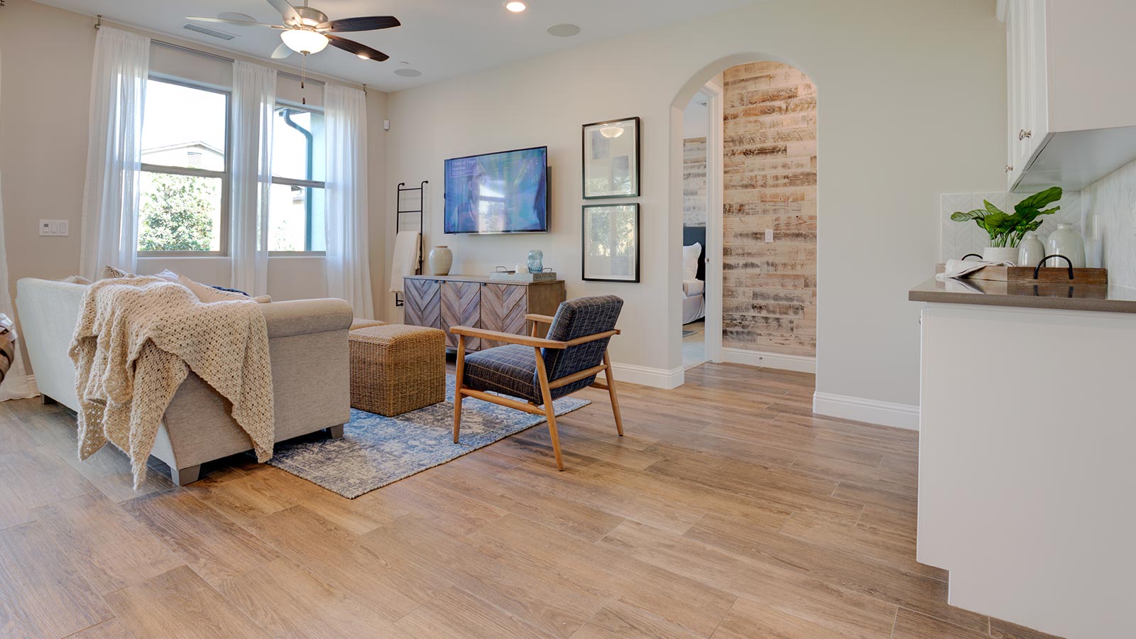 Our newest single story Canvas plan, the Canvas 9, is designed to give you a longer driveway while still providing plenty of interior living space. With a laundry room pass-through to the garage and the option to configure this home to include a home office or formal dining room in place of the fourth bedroom, this home is designed to keep up with your busy schedule. Available with Modern Farmhouse, Spanish and Modern Spanish style exteriors.