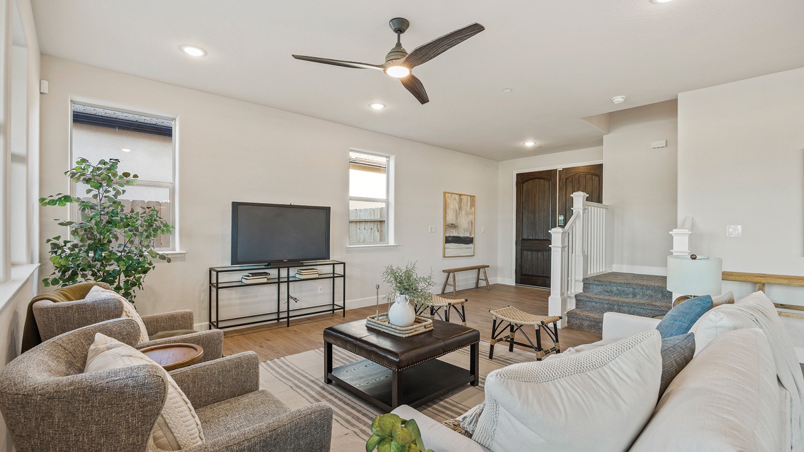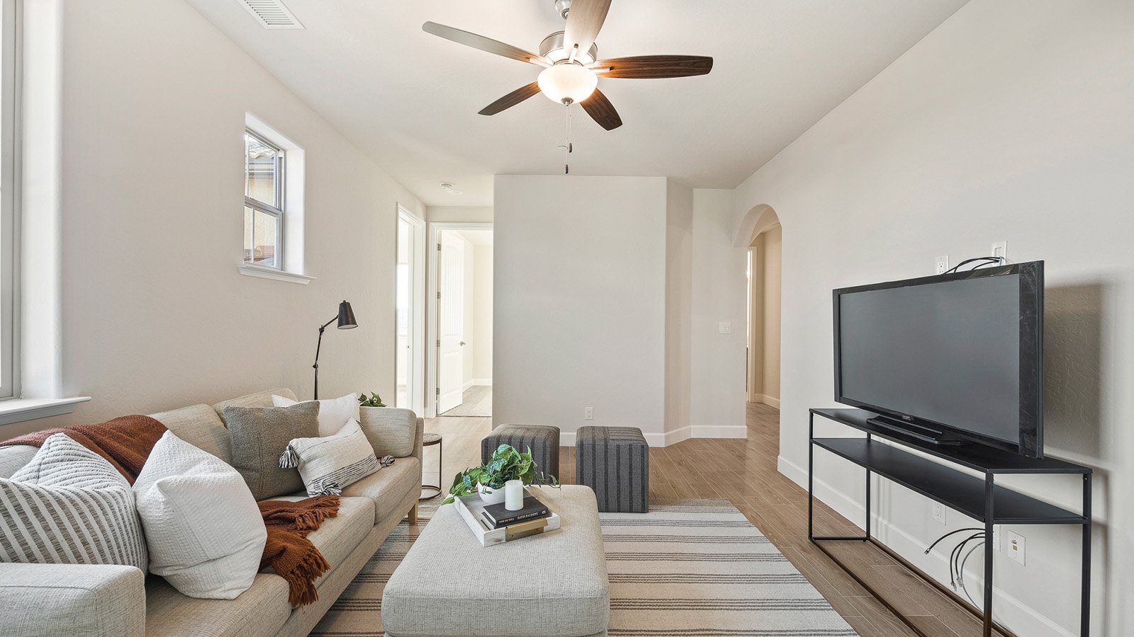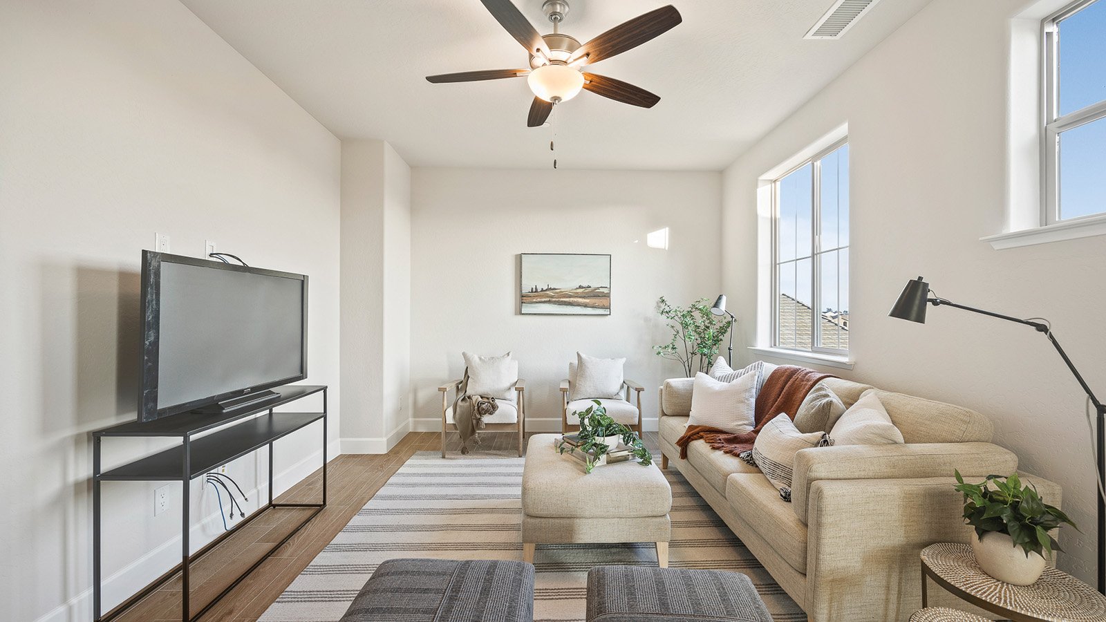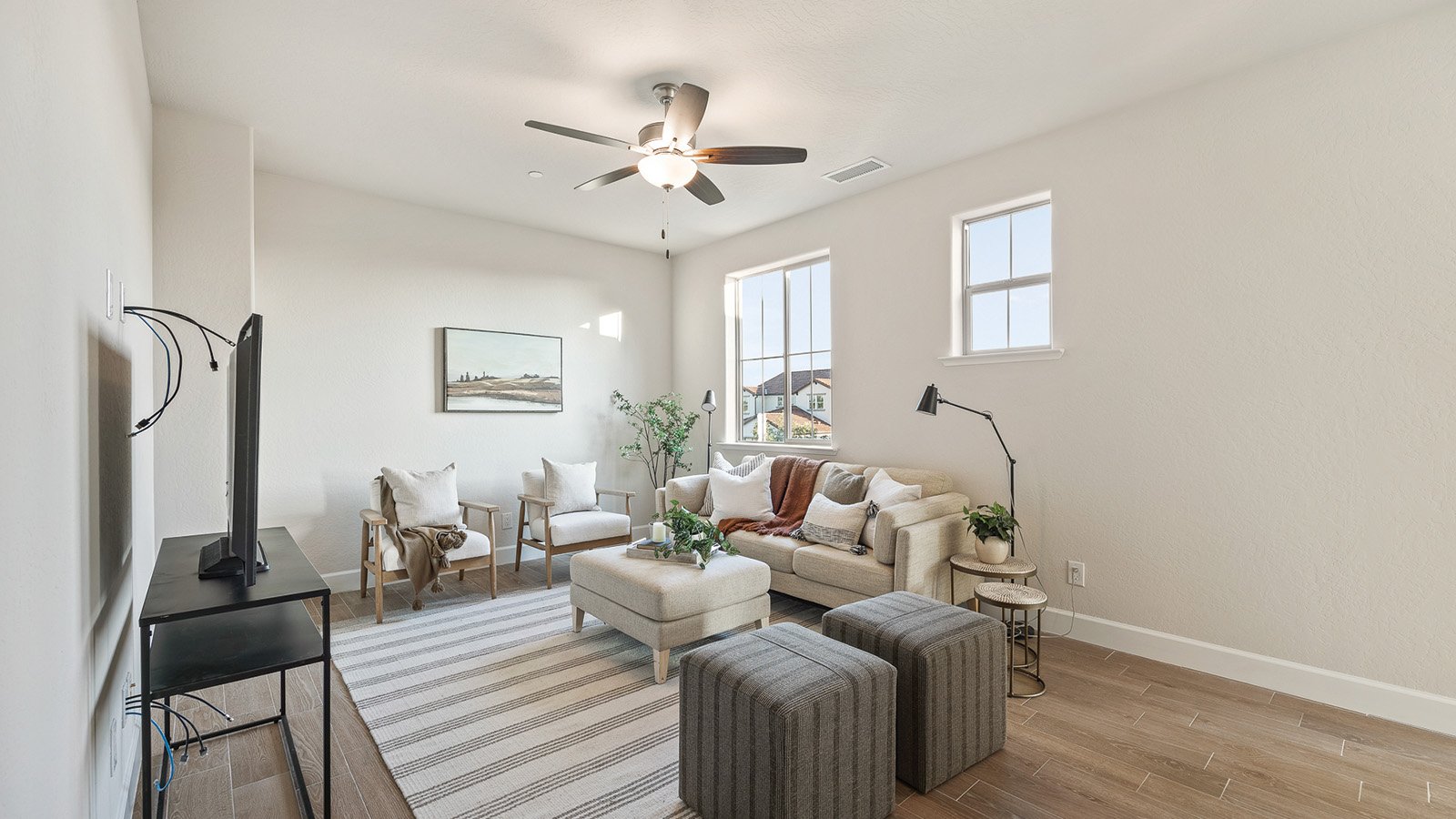 Large open-plan living spaces, a breezy loft and a spacious covered patio give you room to breathe and take a step back from the busy flow of life. Full of natural light and cozy nooks, the Zoie finds beauty in the simple things, like enjoying your morning coffee on the 120 sq. ft back porch. Want a little more room to relax? Options for this plan include an extended, 240 sq. ft. covered patio and a balcony off of the owner’s suite. Available with Modern Farmhouse or Spanish exterior styles.
