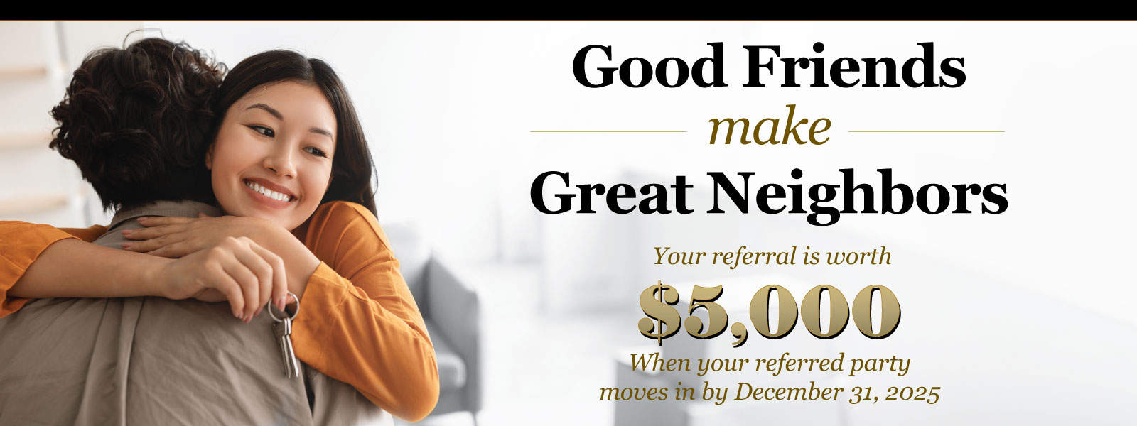 Your referrals are what help us become the #1 new home builder in the Central Valley. And for a limited time, we’re giving you an extra reward for your referral. When your referred friend or family member moves into their new Granville before December 31, 2025, we’ll increase our usual $500 homeowner referral reward to $5,000. Not only that, but we will also give your friend buying a Granville home a flexible credit worth up to $2,500 that they can use toward closing costs, owned solar, or designer upgrades. *Excludes Villas homes.