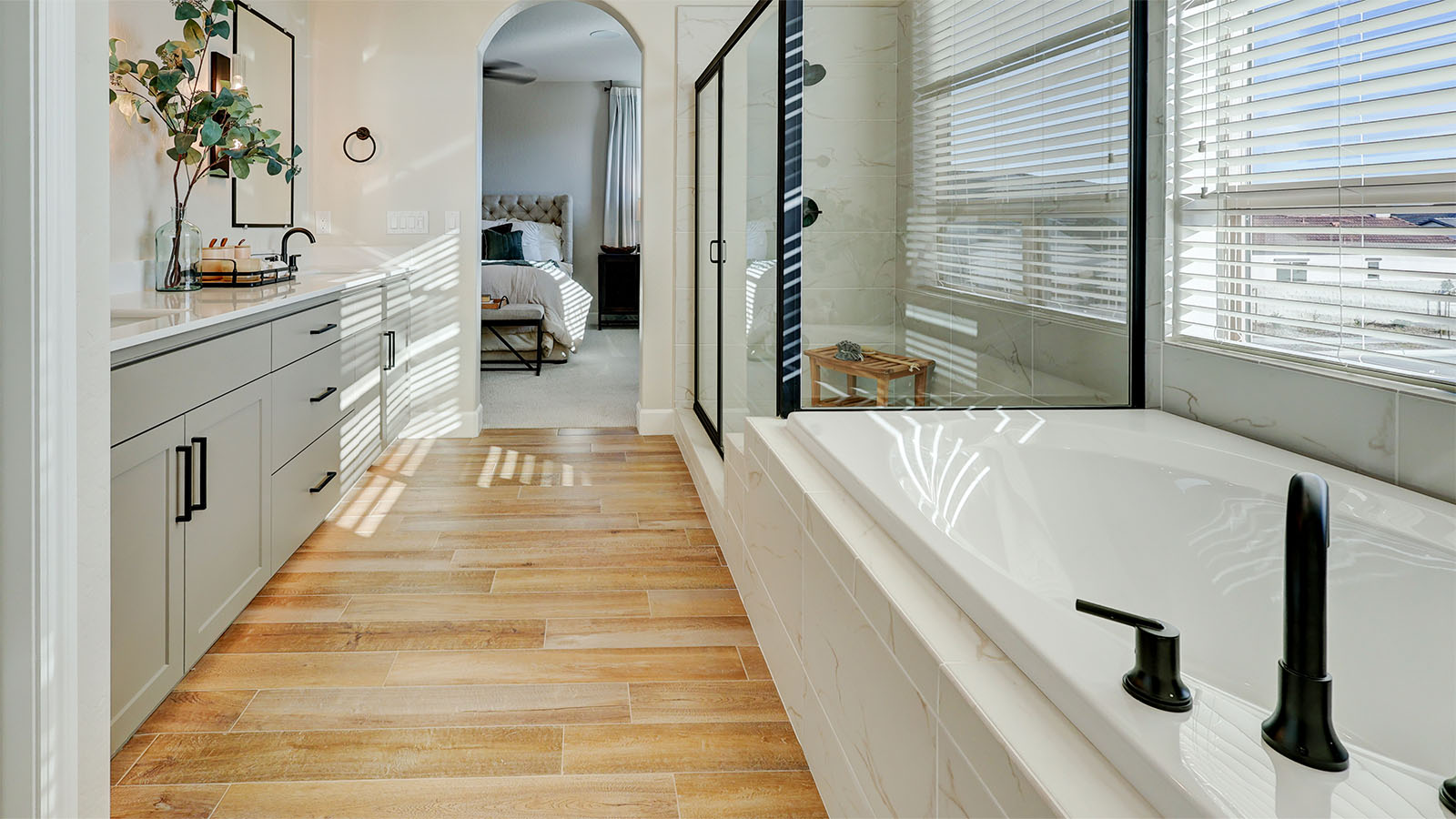 - Upgraded Wood Plank Tile Floors